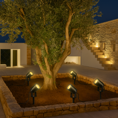 Notre modèle phare, le spot LED exterieur Orbis, combine élégance et performance avec son design contemporain qui s'intègre parfaitement à tous les styles de jardins. Sa lumière puissante et directionnelle permet de mettre en valeur vos massifs de fleurs, vos arbustes ou votre façade.