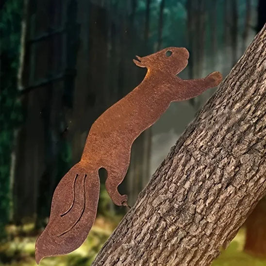 OBJETS DÉCORATIFS POUR LE JARDIN : ÉCUREUIL EN MÉTAL ROUILLÉ